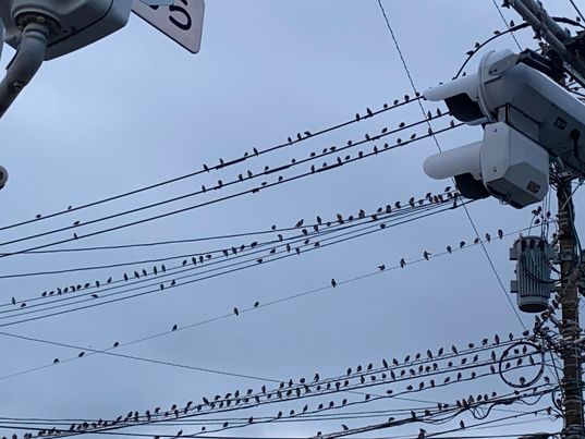 最近ムクドリの天敵のカラスが街から減ってきていて、ムクドリが増えてきているらしいです。